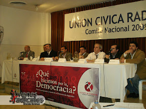 Jesús Rodríguez, Carlos Raimundi, Luis Yanicelli, Guillermo Galván, Jorge Natali, Alejandro Rabinovich, Hernán Rossi y Emiliano Afara. Actuaron de moderadores Juan Nosiglia, actual presidente del Comité Nacional de la Juventud Radical, y Pepe Eliaschev, prestigioso periodista y analista político.